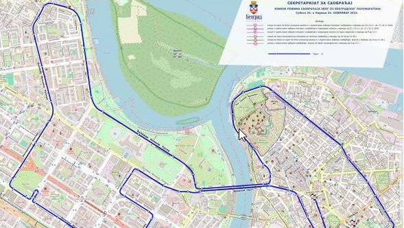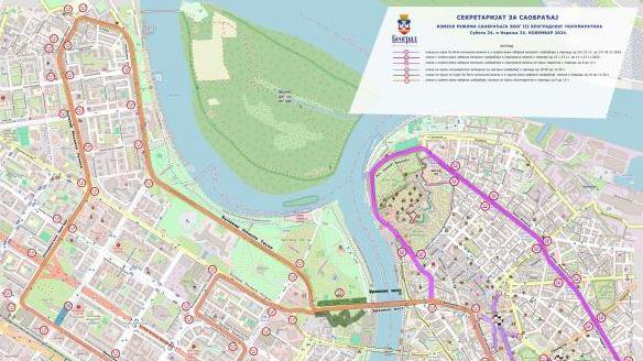 od 22 časa (23.11.) do 12 časova (24.11.), biće obustavljen saobraćaj i zauzet kolovoz u u ulicama: Bulevar kralja Aleksandra (od Kneza Miloša do Beogradske) i Resavska (od Krunske do Bulevara kralja Aleksandra), kao i svi prilaze trasi uključujući i delove trase koji su ranije zatvoreni iz organizacionih razloga;