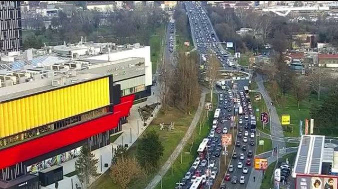 Kako se vidi na snimcima sa gradskih kamera i Gugl mapi automobili se sporo kreću na svim glavnim deonicama u prestonici, posebno na mostovima.