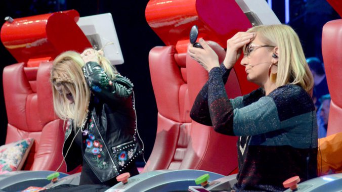Naime, tokom pauze, pevačici su se u kosu upetljale slušalice, a prvo je pokušala da sama reši problem dok je Leontina Vukomanović nonšalantno popravljala šminku pored nje.