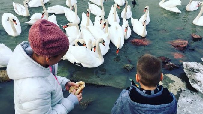 Na obe fotografije koje je objavila na Instagramu vide se njena deca i labudovi u pozadini.