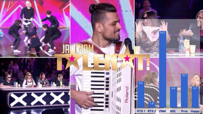 Televizija Pink i večeras je najgledanija među komercijalnim emiterima, a šou program "Ja imam talenat" oborio je sve rekorde gledanosti.