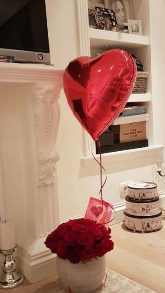 Prelepe ruže upotpunio je i helijumskim balonom u obliku srca, a oduševljena pevačica ponosno je pokazala svoj poklon na Instagramu.