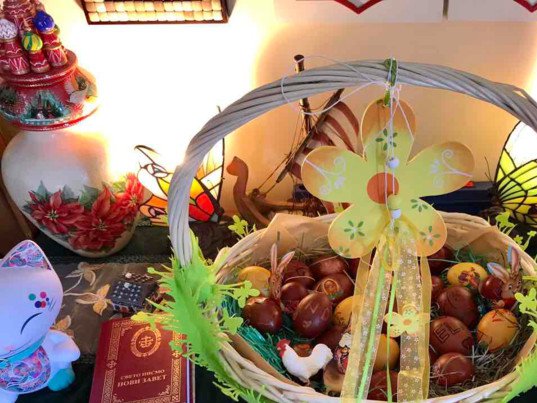 Korpa sa jajima zauzela je centralno mesto na trpezarijskom stolu, tik do zida sa ikonama, a ovih dana u Indirinom domu preovladavaju prolećni tonovi i ukrasi u duhu Vaskrsa, kojem se neizmerno raduje.