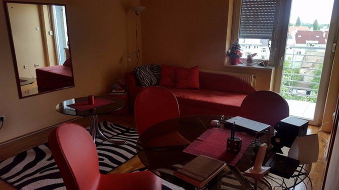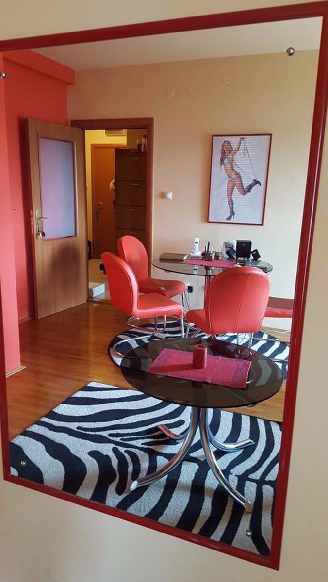 Crvena boja dominira u stanu ove atraktivne pevačice i Pinkove zvezvde, a frižider krase magneti sa brojnih putovanja.