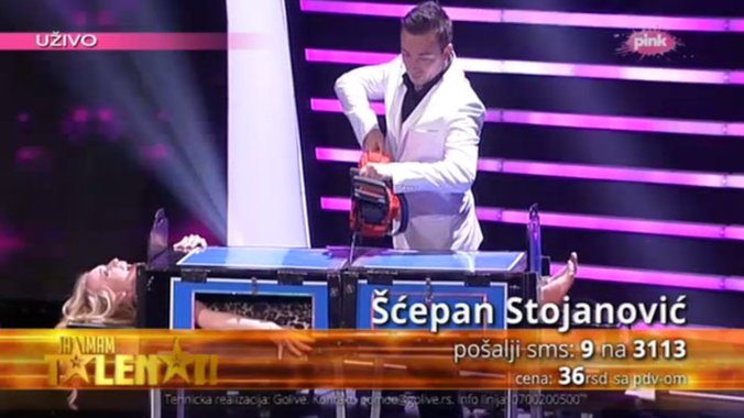 Mađioničar je potom uveo lepu plavušu na scenu, a potom je ubacio u končeg i repsekao testerom na pola. nakon ovog šoka,Volare je upitao Žiku koju stranu tela , ove lepotice želi, a voditeljak je rekla da je samo čekala momenta kada će neki mađioničar da iskasapi nekoga.