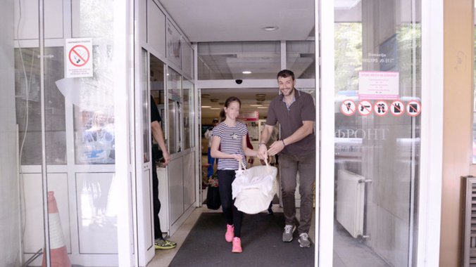 Srečna porodica se u porodilištu zadržala nešto više od 30 minuta, nakon čega su zajedno izašli na glavni ulaz Narodnog fronta i na iznenađenje mnogih opušteno ćaskali sa novinarima.
