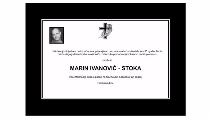 Na fejsbuk stranici poznatog zagrebačkog repera Marina Ivanovića Stoke osvanula je skandalozna umrlica koja je zaprepastila javnost, a posebno njegove fanove.
