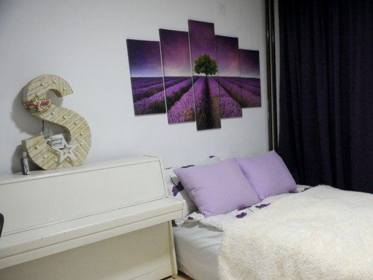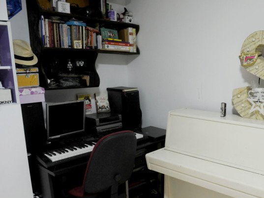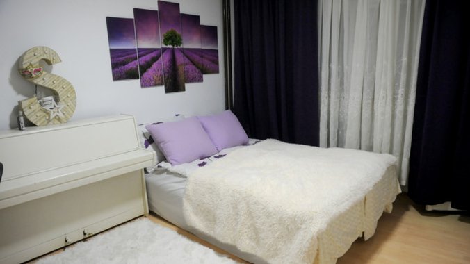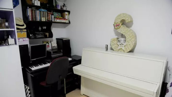 U Sarinoj sobi najviše prostora zauzima veliki krevet, a da se radi o pravoj ženskoj sobi može se videti već sa vrata jer je sve u beloj i ljubičastoj boji. Kako još od sedme godine svira klavir, u Sarinoj sobi posebno mesto zauzuma i beli klavir, ali i klavijature uz koje vežba za svaki nastup.