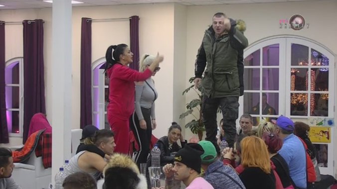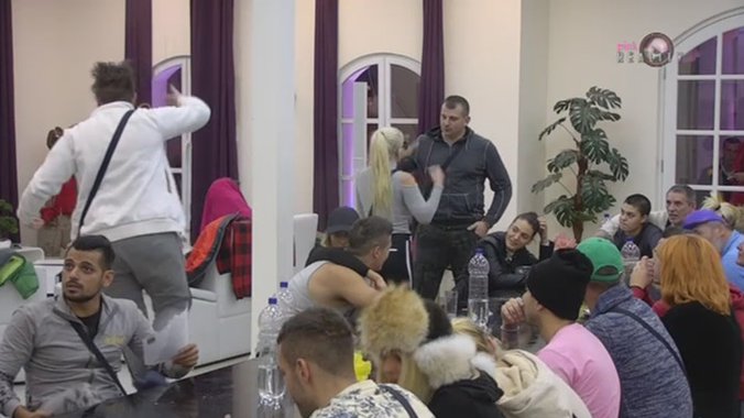 Kako bi skrenuo što veću pažnju na sebe Miljan se popeo na sto, odakle je nastavio sa vikom, a na noge je skočila i Saška Karan. Kada je videla da Sanji ne ide za rukom da se izbori sa pevačicom i trenerom umešala se Matora koja je odmah počela da brani svoju drugaricu.