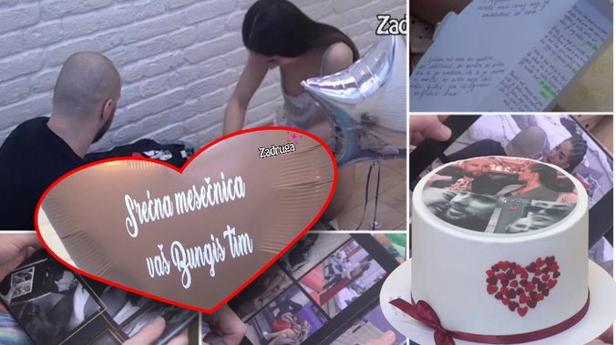 Zvezdan Slavnić i Anđela Đuričić počeli su sa otvaranjem poklona koje su dobili od "Bungiš tima", njihove podrške, povodom mesečnice. Naime, kako su otvarale kutije, uvideli su dve majice na kojima piše "ona je moja", "on je moj", te je Slavnić odmah prokomentarisao:
