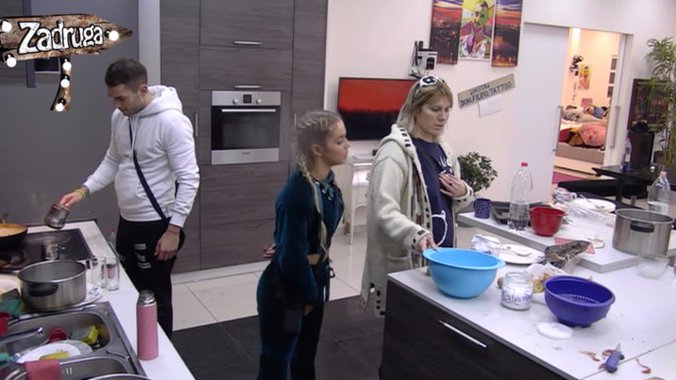 Dok su se ostali šalili na Jelenin račun, pevačica Teodora Džehverović i maneken Anđelo Ranković odlučili su da glumici pomognu u spremanju toplih obroka za sutrašnju pauzu svojih radnih cimera.
