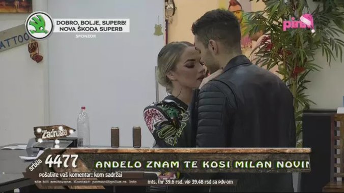 Teodora i Anđelo našli su se u dnevnoj sobi, a o tome koliko su zaljubljeni pokazuje činjenica da je svaki stih pesme uticao da se ovaj par neprestano grli i ljubi, a posebnu pažnju privukli su kad je jedan od pevača zapevao pesmu Dina Merlina ,, Kad čovek voli ženu".