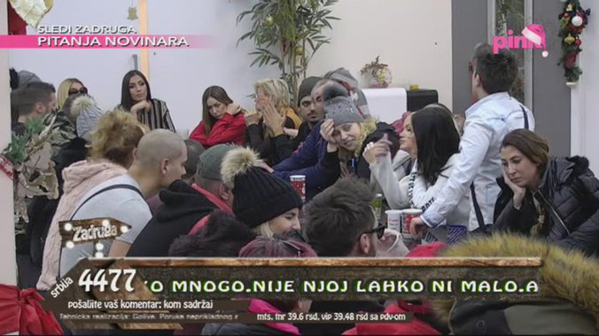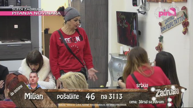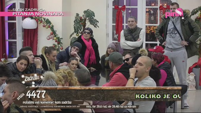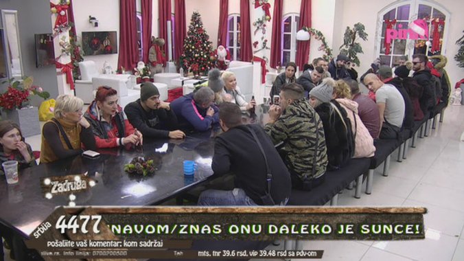 Kada je voditeljka Katarina Nikolić ušla u Belu kuću, to je zadrugarima bio znak da počinje sastanak, međutim nisu svi bili za stolom. Naime, Bane Čolak i Miljan Vračević bili su u dvorištu. Oni su sa farme izveli magarca, koga su pokušali da uvedu u kuću, a ostali su bili iznenađeni.