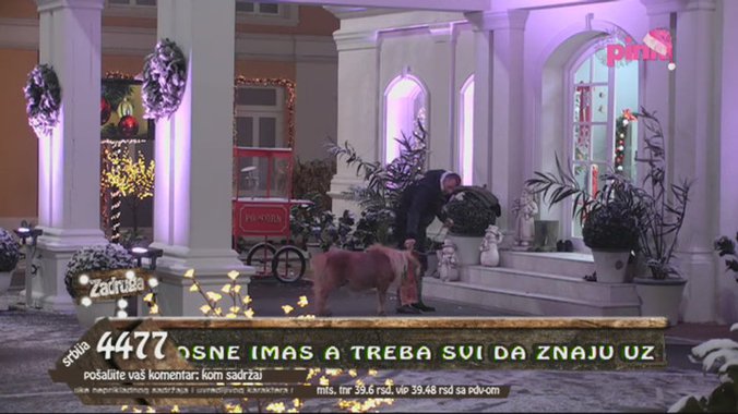 Kada je voditeljka Katarina Nikolić ušla u Belu kuću, to je zadrugarima bio znak da počinje sastanak, međutim nisu svi bili za stolom. Naime, Bane Čolak i Miljan Vračević bili su u dvorištu. Oni su sa farme izveli magarca, koga su pokušali da uvedu u kuću, a ostali su bili iznenađeni.