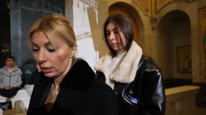 Ceca je na liturgiju stigla sa svojom rođenom sestrom Lidijom Ocokoljić. Pevačica je privukla veliku pažnju svojim stajlingom. Nosila je beli kaput sa zanimljivim detaljima na kragni, ispod kojeg je imala belu košlju i crnu mašnu oko vrata. Ražnatovićeva je stigla sa sinom Veljkom, Lidijinom decom i ostatkom porodice.