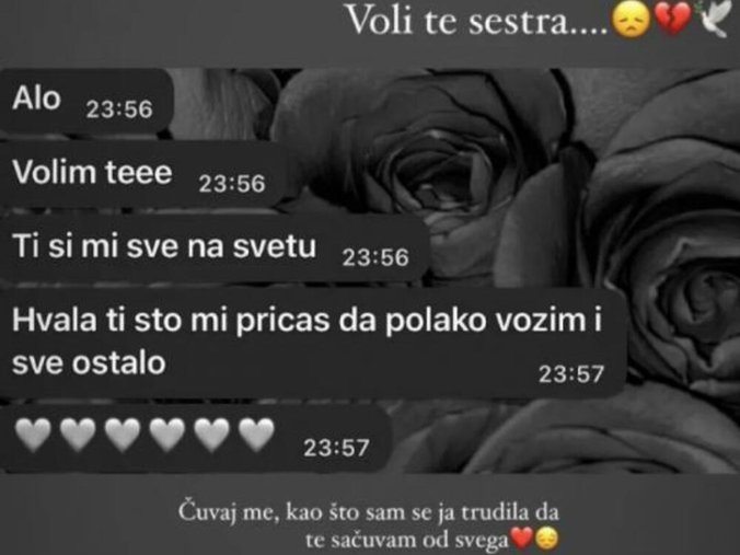 - Dušo moja mila, bato moj, zašto ovako? Nismo se bato ovako dogovorili. Voli te sestra, uvek sam bila tu. Volim te, volela sam te i voleću te. Bar me ti znaš oko moje. Jedini si bio uvek tu, znam da si tu još uvek i da ćeš biti uz mene. Bato moj, koliko sam ti pričala bato, a ti mene gledaš pa nabaciš onaj tvoj najlepši osmeh. Počivaj u miru. Vidimo se na nekom boljem mestu - poručila je Milica potpuno skrhana od bola, a potom sa tugom otkrila da joj je najžalije što se sa bratom nije pozdravila.