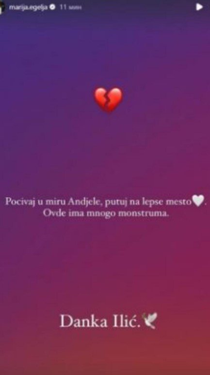 Počivaj u miru anđele, putuj na lepše mesto. Ovde ima mnogo monstruma - oprostila se voditeljka Mariaj Egelja.