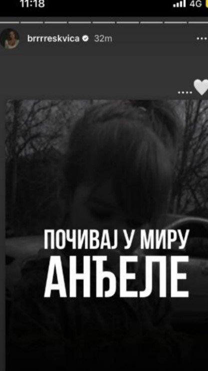 Mlada pevačica Anđela Ignjativić Breskvica takođe se oprostila od Danke: "Počivaj u miru anđele"