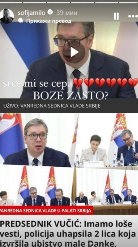 "Srce mi se cepa - Bože zašto", napisala je Sofija.