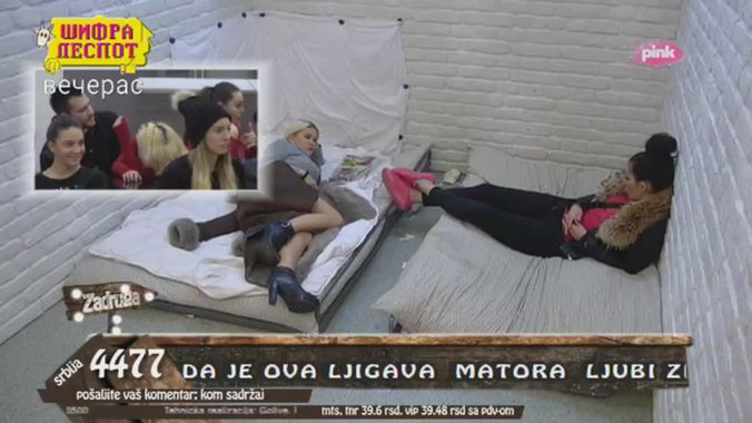 U toku prošle noći Sara Reljić i Vojke Đans imali su priliku da pogledaju snimak na kome ih Andrijana Radonjić i Sanja Stanković ogovaraju. Po završetku priloga, Maca Diskrecija se umešala i rekla kako su sve to ove dve zadrugarke trebale da kažu svojoj drugarici Sari u lice.
