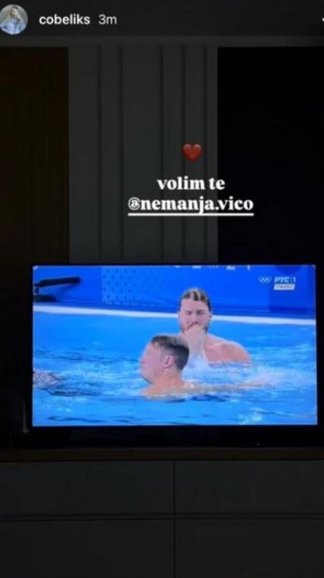 Trudna Jelena, lepša polovina vaterpoliste Nemanje Vica podržala je supruga na društvenoj mreži Instagram. Ona je u poodmakloj trudnoći pomno pratila utakmicu, te je na kraju borbe objavila fotografiju sa emotivnom porukom: