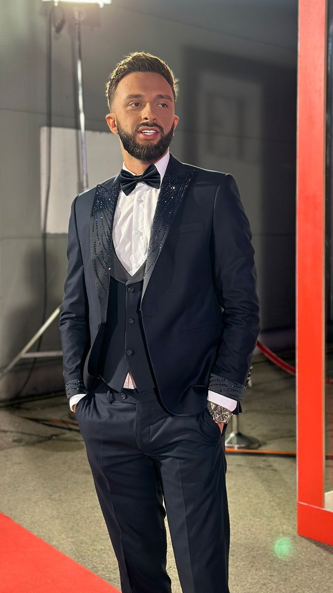 Ana Radulović odabrala je za večeras crni kombinezon sa srebrnim detaljima, dok je Darko Tanasijević izavrao crno odelo sa specifičnim detaljima, belu košulju i crnu leptir mašnu.