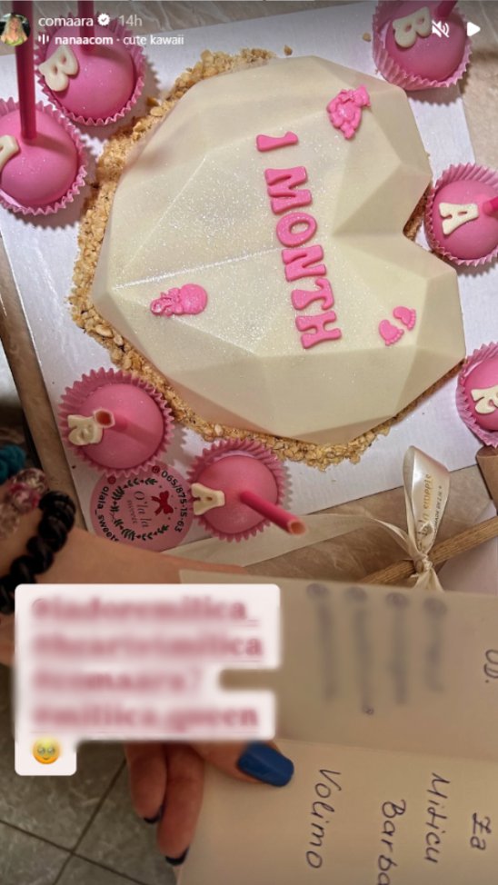 Milica je podelila na svom Instagram proflu roze tortu u obliku srca na kojoj piše "jedan mesec" kao i čestitka.