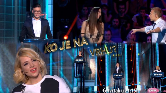 U najhumanijem kvizu na ovim prostorima "Ko je na vrhu?" ovog četvrtka od 21:15 časova za pobedu će se boriti pevačice Ivana Peters i Ana Štajdohar, koje su nekada bile deo grupe "Tap 011" i lice TV Pink, Ognjen Nestorović, urednik i voditelj najgledanije emisije o poznatima "Premijera-Vikend specijal".