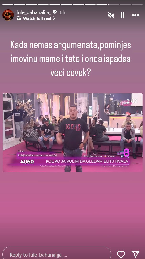Ovaj njegov potez prokomentarisao je i bivši učesnik Elite, Lule Bahanalija, koji je dao svoj sud o novonastaloj situaciji.