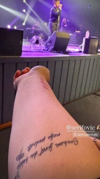 Dok je Marija pevala, žena pod imenom Adela je ispružila ruku i slikala tetovažu na kojoj je stih njene pesme "Pametna i luda".