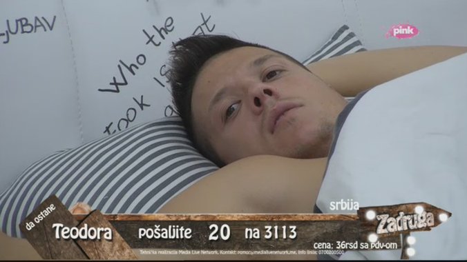 Nakon što se isplakala, Đoganijeva je iz sobe za izolaciju otišla u svoj krevet, gde je legla pored Slobodana koji nije davao preveliki značaj njenom dolasku. Ranije sinoć, Luna je Slobi napisala i ljubavno pismo, a kako je izgledala ova situacija pogledajte u video-prilogu ispod.