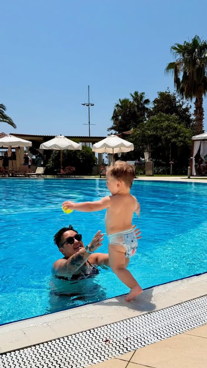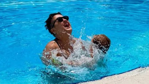 Marja je podelil fotografije sa bazena, na kojima se jasno vidi da uživa u roditeljstvi, ali i da njen sin prvenac uživa u maminom druištvu.