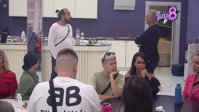 Napravljen je prvi presek. Voditelj Milan Milošević upravo je ušao u Belu kuću, kako bi saopštio ko prvi večeras napušta ''Elitu 8''.