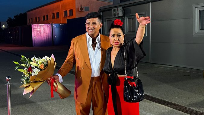 Peja je odabrao za ovu priliku oker odelo, a bivši supružnici pozirali su zajedno pred našim objektivima.