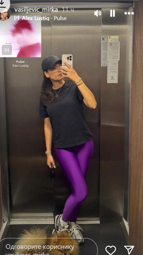 Tako je sada Mirka objavila selfi iz lifta i pokazala stajling za šetnju psa.