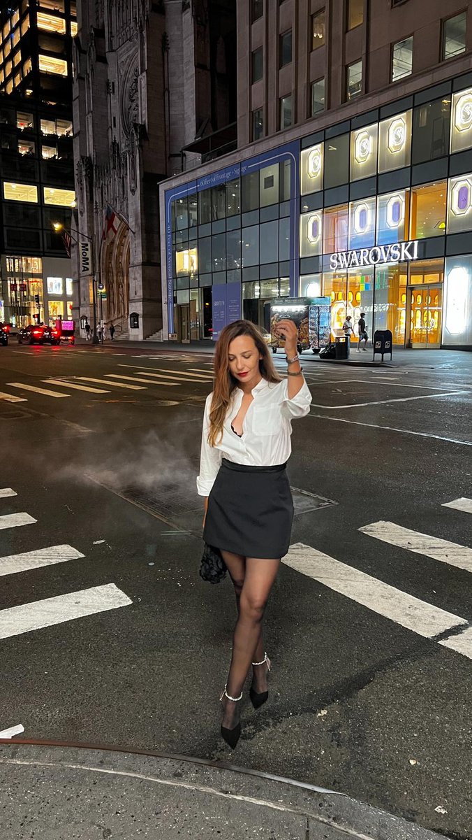 Na fotografijama iz Njujorka Goca Uzelac uživa u šetnji gradom. Posebnu pažnju privuklo je njeno modno izdanje, kratka crna suknja kojom je istakla svoje vitke noge, uz jednostavne detalje koji su upotpunili ceo stajling.