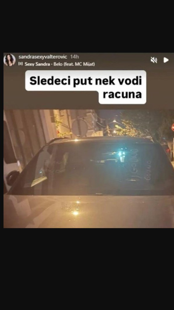 Međutim Sandra se tu nije zaustavila pa je objavila sliku njegovg auta i napisala kratak opis: "Sledeći put Nek vodi računa"