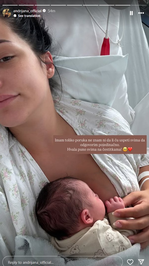- Imam toliko poruka ne znam ni da li ću uspeti svima da odgovorim pojedinačno. Hvala puno svima na čestitkama - napisala je Andrijana na fotografiji.