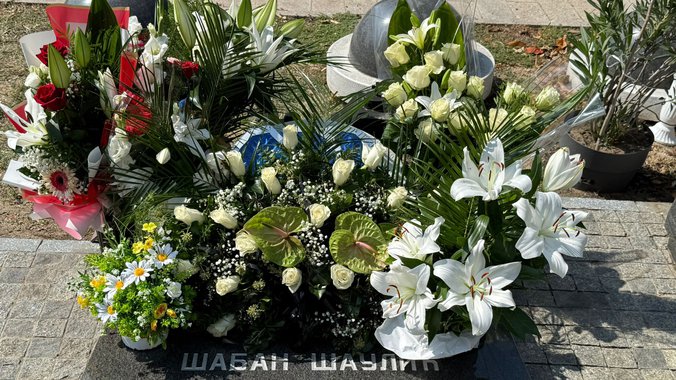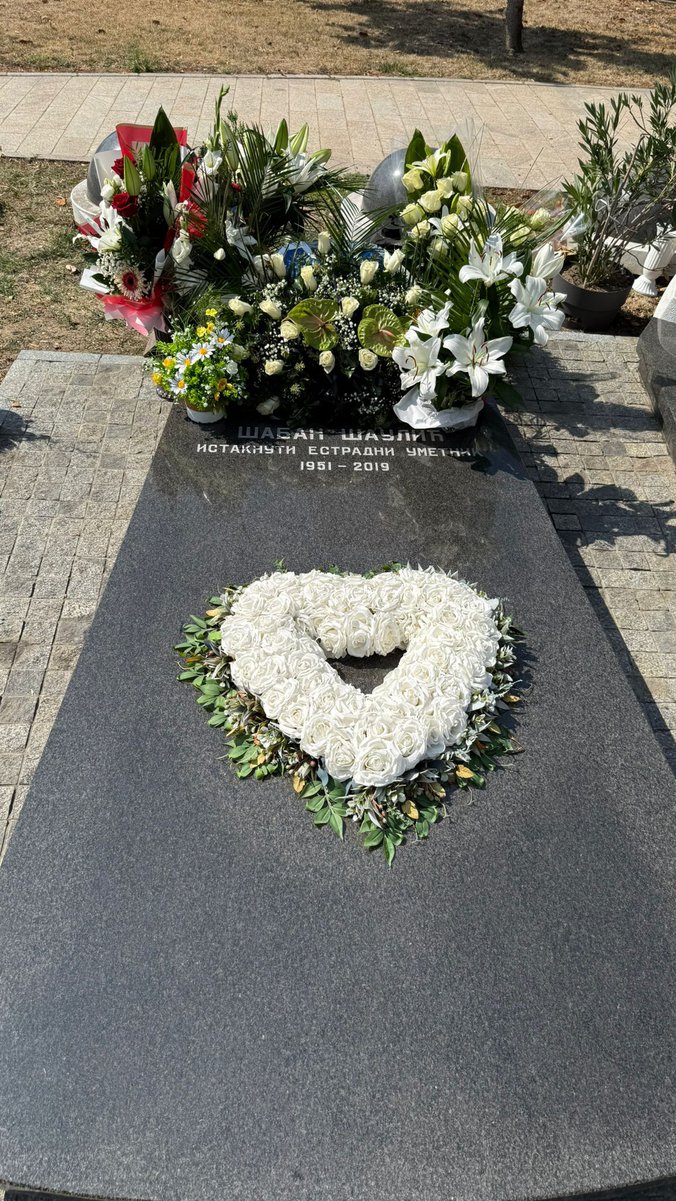 Na grobu Šabana Šaulića najdraži članovi njegove porodice ostavili su venac u obliku srca, ispleten od belih cvetova i uokviren zelenilom, dok su oko njega položili raskošne aranžmane sa belim ljiljanima, ružama i hrizantemama, kao dostojanstven znak ljubavi i sećanja