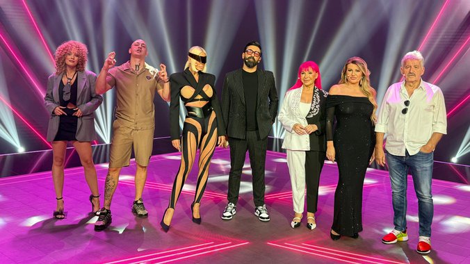 Viki Miljković, Dragan Stojković Bosanac, Dragomir Despić Desingerica, Jelena Karleuša i Zorica Brunclik pozirali su na zajedničkoj fotografiji samo par trenutaka pre nego što će se smestiti u dobro poznate crvene stolice.