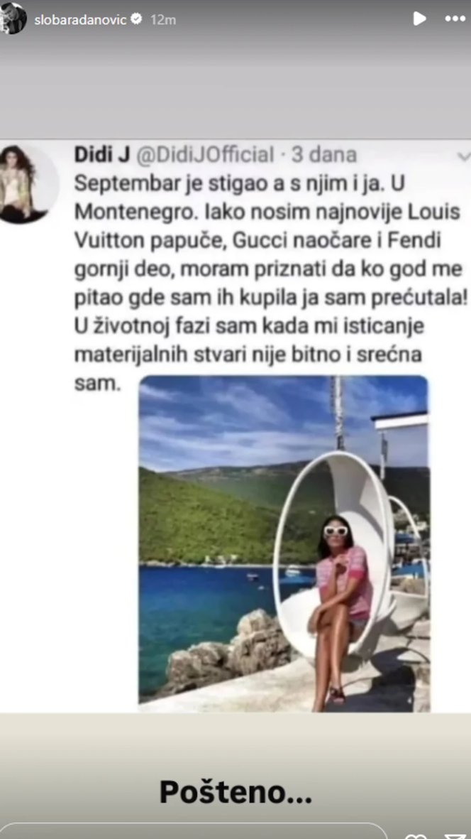 Sloba Radanović je, naime, podelio objavu profila pod nazivom "Didi J" sa društvene mreže Iks, u kojoj je pisalo: