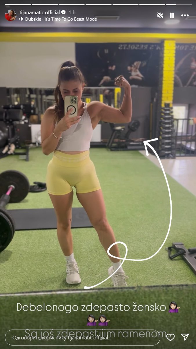 Sledeća objava je bila i odgovor na napad njenog izgleda. Naime, postavila je fotografiju iz teretane.