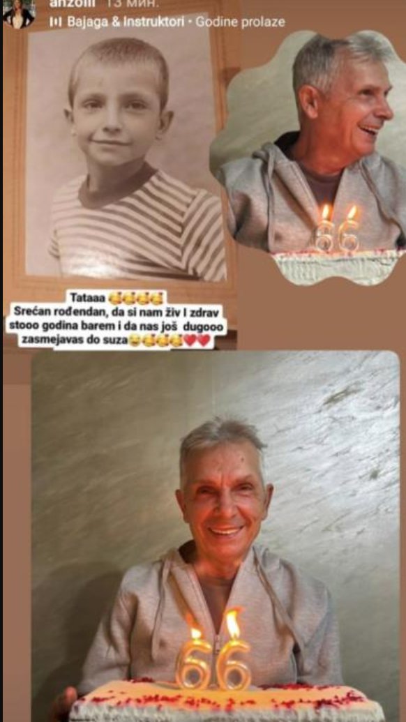 Pevačicina sestra Anđela je podelila kolaž fotografija njihovog tate dok duva svećice na rođendanskoj torti.