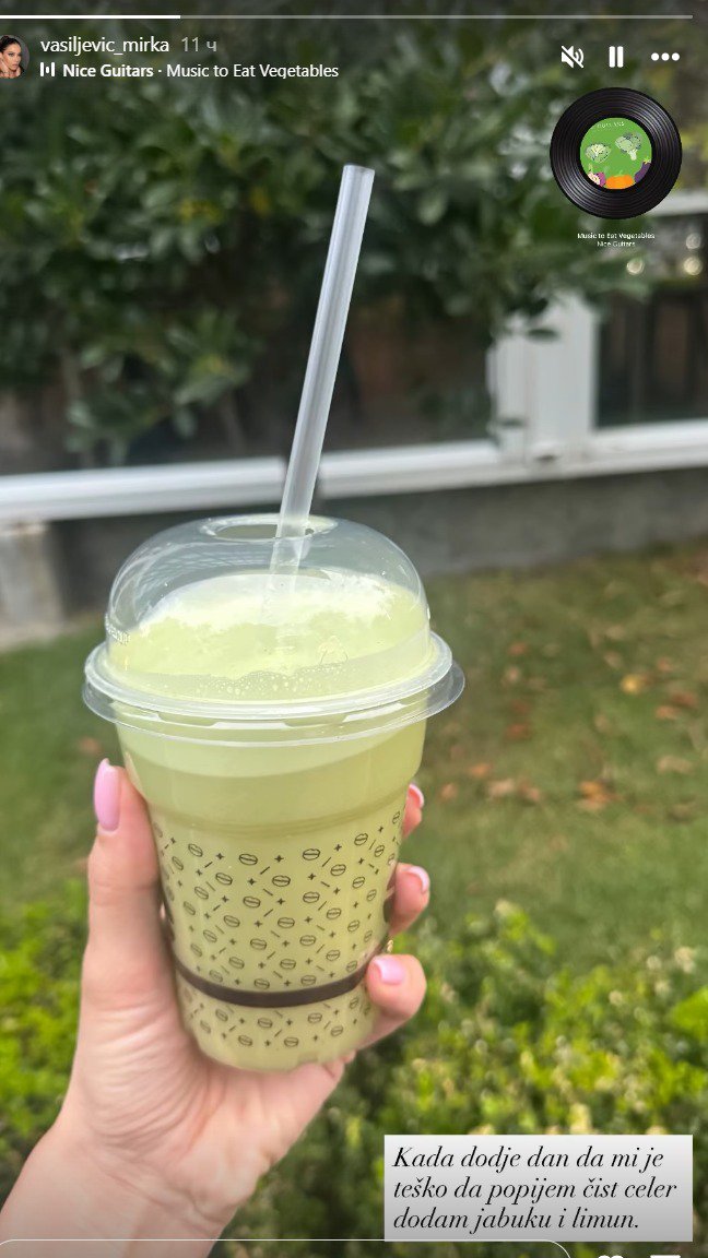 - Kada dođe dan da mi je teško da popijem čist celer, dodam jabuku i limun - napisala je Mirka u opisu storija na Instagramu.