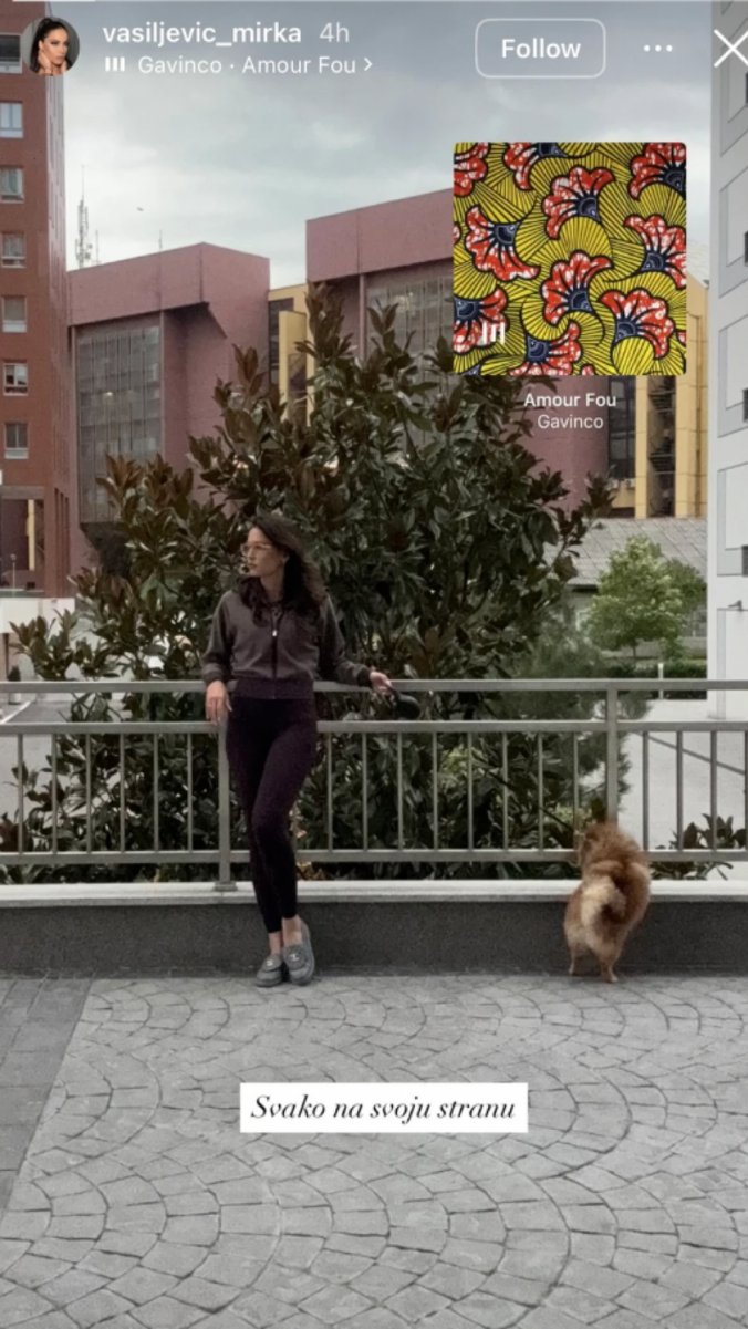 Mirka mesecima unazad sa svojom publikom na društvenim mrežama deli svoju svakodnevicu, odgovara na pitanja pratilaca o majčinstvu i karijeri, načinu na koji se neguje, ali i dalje savete o zdravoj ishrani i načinu života. Vreme svakodnevno provodi i sa kućnim ljubimcima, a današnja objava na njenom Instagramu privukla je pažnju njenih pratilaca.