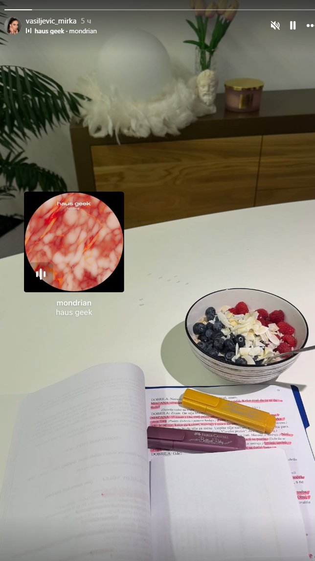 Naime, glumica je slobodan trenutak iskoristila za voćnu kašu, a pored obroka, nalazila se hrpa papira i markeri, što je korisnike društvenih mreža asociralo na one hartije, spremne za prakorazvodnu parnicu.