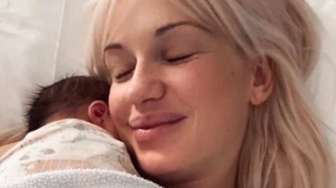 Na fotki je vidimo sa naslednikom u krevetu, a Anja je imala razvučen osmeh na licu.