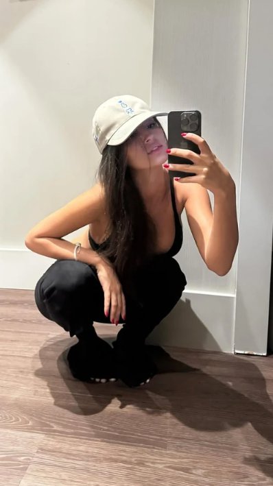 Naime, Đina se slikala u brushalteru, uskoj crnoj trenerci i sa kačketom na glavi, a promenila je sve poze.