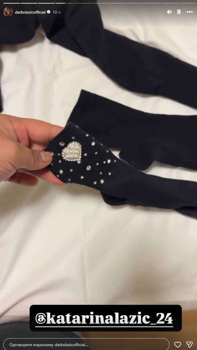 - Ali pogledajte kakve čarape mi je spakovala. Hvala ti ljubavi puno, nisi morala, znam da me voliš - rekao je pevač dok je pokazivao ženske čarape sa cirkonima, koje je Katarina očigledno greškom spakovala.