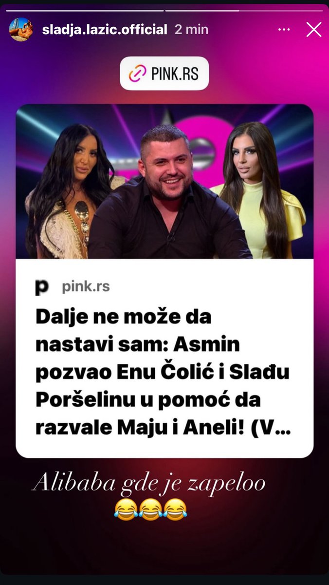 - Znaš s kim bih ja njih razvalio? To je Ena Čolić i Slađa Poršelina, kakva god da je Slađa, ali one bi razvalile. Ena ima isti interes kao ja - rekao je Alibaba.
